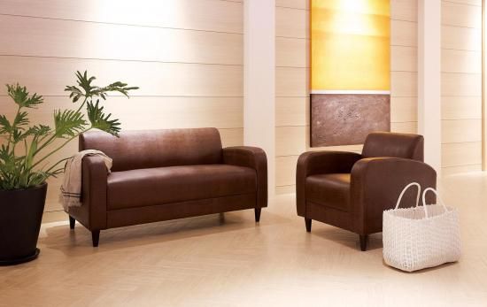 やわらかなカーブを描くアームと、すっきりとした背もたれが印象的なソファ「バグー」。ホテルロビーや待合スペースなど、落ち着いたくつろぎ感を演出したい空間に適したシリーズです。
