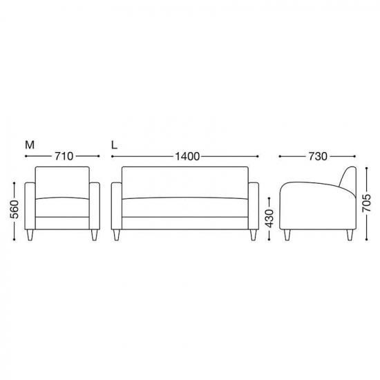 L(2人掛):W1400×D730×H705×SH430mm - 座部